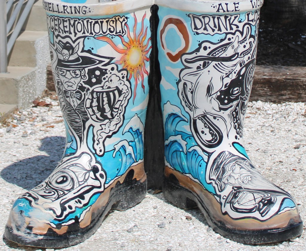 In my first post about this trip, I mentioned the Lowcountry Boot Trail, and we finally got to dive into it on Sunday morning. Officially called The Watermen’s Wave Lowcountry Boot Trail, this creative art installation is part of a project by the Beaufort Area Hospitality Association. It features large, painted boots scattered throughout Beaufort County, each uniquely decorated by local artists. The boots honor the region’s Watermen—crabbers, fishermen, and others who’ve long shaped life in the Lowcountry.