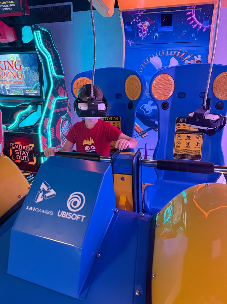 After breakfast, we spent a few hours at the resort arcade — always a hit for our family — and then headed to the pool once the weather cleared. Hubs and I relaxed near the North Village Pool while the boys splashed around. We tried cocktails from the pool bar, but they were a little too sweet and strong (and these were singles!), so we dumped them.