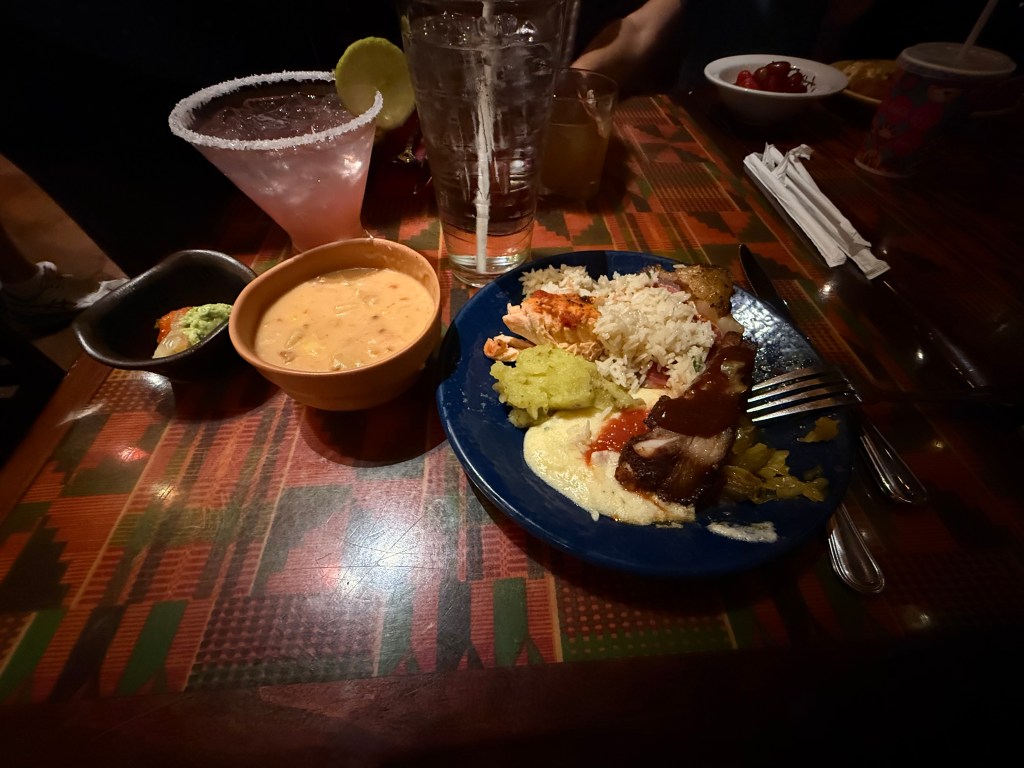 Dinner that evening was at one of our favorites — Boma at Disney’s Animal Kingdom Lodge. The cocktails there are always on point, so those definitely didn’t go to waste. The food was, as always, amazing. I was thrilled to see the kokonut rice on the buffet this time (it alternates with peanut rice, which is also delicious). Their chicken corn chowder is legendary — I could eat a vat of it, but managed to stop at one cup.