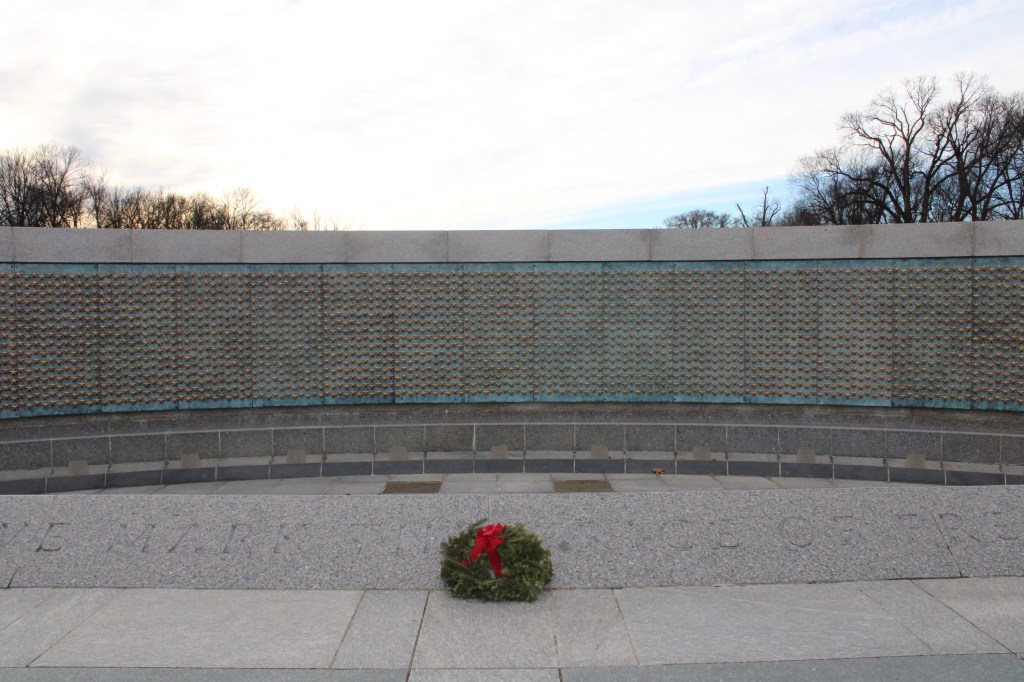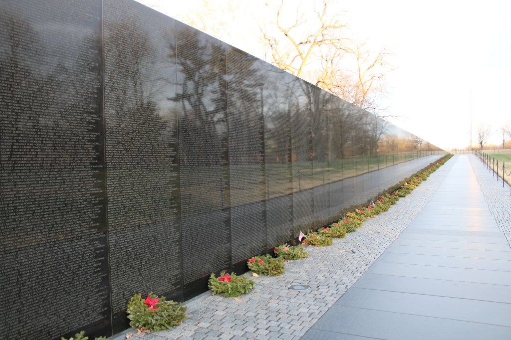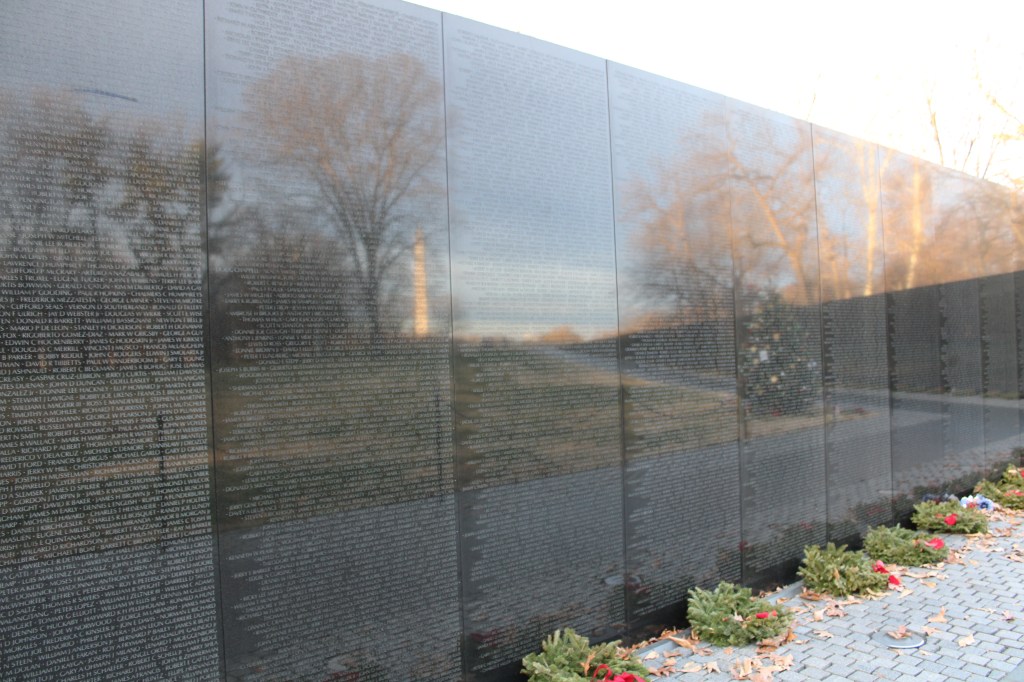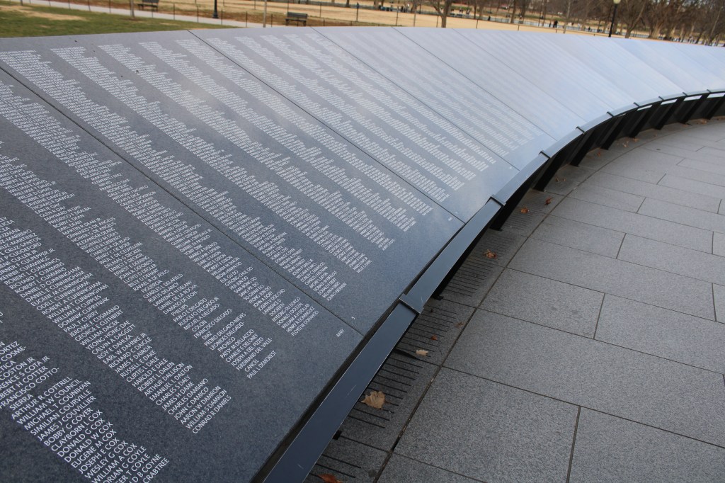The Vietnam Veterans Memorial was equally solemn. As I walked along the wall, a woman knelt nearby, carefully doing a stone rubbing of a name. Another name had already been transferred to the paper. Notes “to the family of” were scattered throughout. It was impossible not to feel the weight of it all.