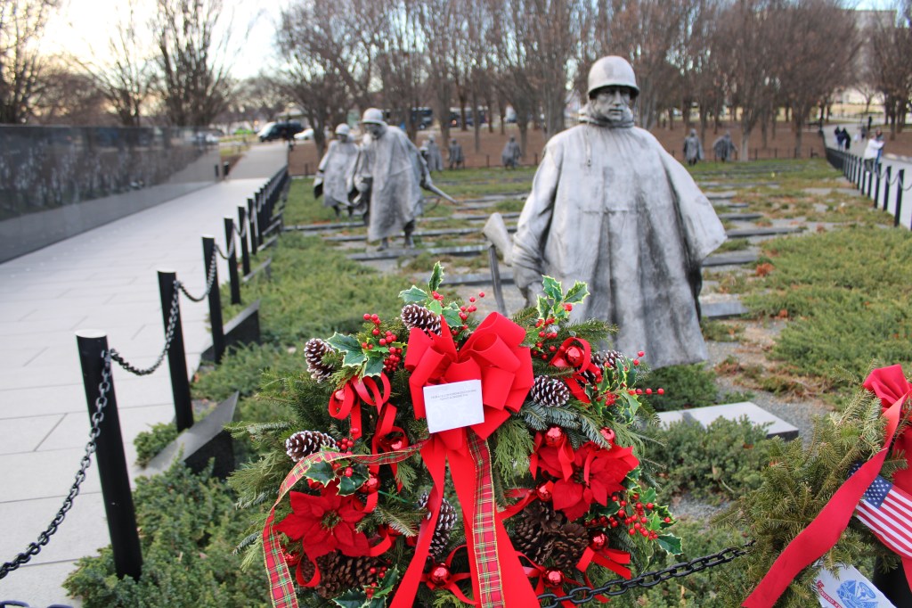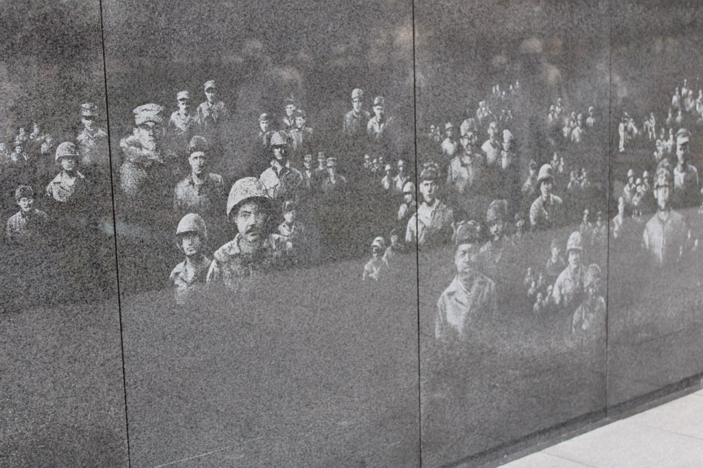 The Korean War Memorial stopped me in my tracks. The realism of the statues is breathtaking. A wreath had been placed at the front with a note from a fellow soldier who had fought alongside them. It was simply stunning.