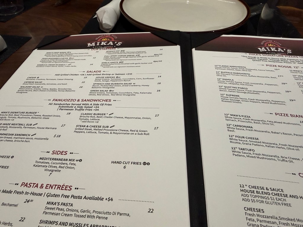 The carousel was running throughout the evening, along with a light maze and a train ride (additional tickets were required for those). We wrapped up the night with dinner at Mika’s Neapolitan Pizza, a new restaurant right across the street from the zoo. Hubs and I opted for pasta—Mika’s Pasta and the Smoked Fettuccine Alfredo—and both were incredible. The Pull-Apart Cheese Bread was a hit, and the cocktails (the Jalapeño Pineapple Margarita and Mark Twain’s Old Fashioned) were perfectly made. The boys happily devoured their cheese pizza and buttered pasta.