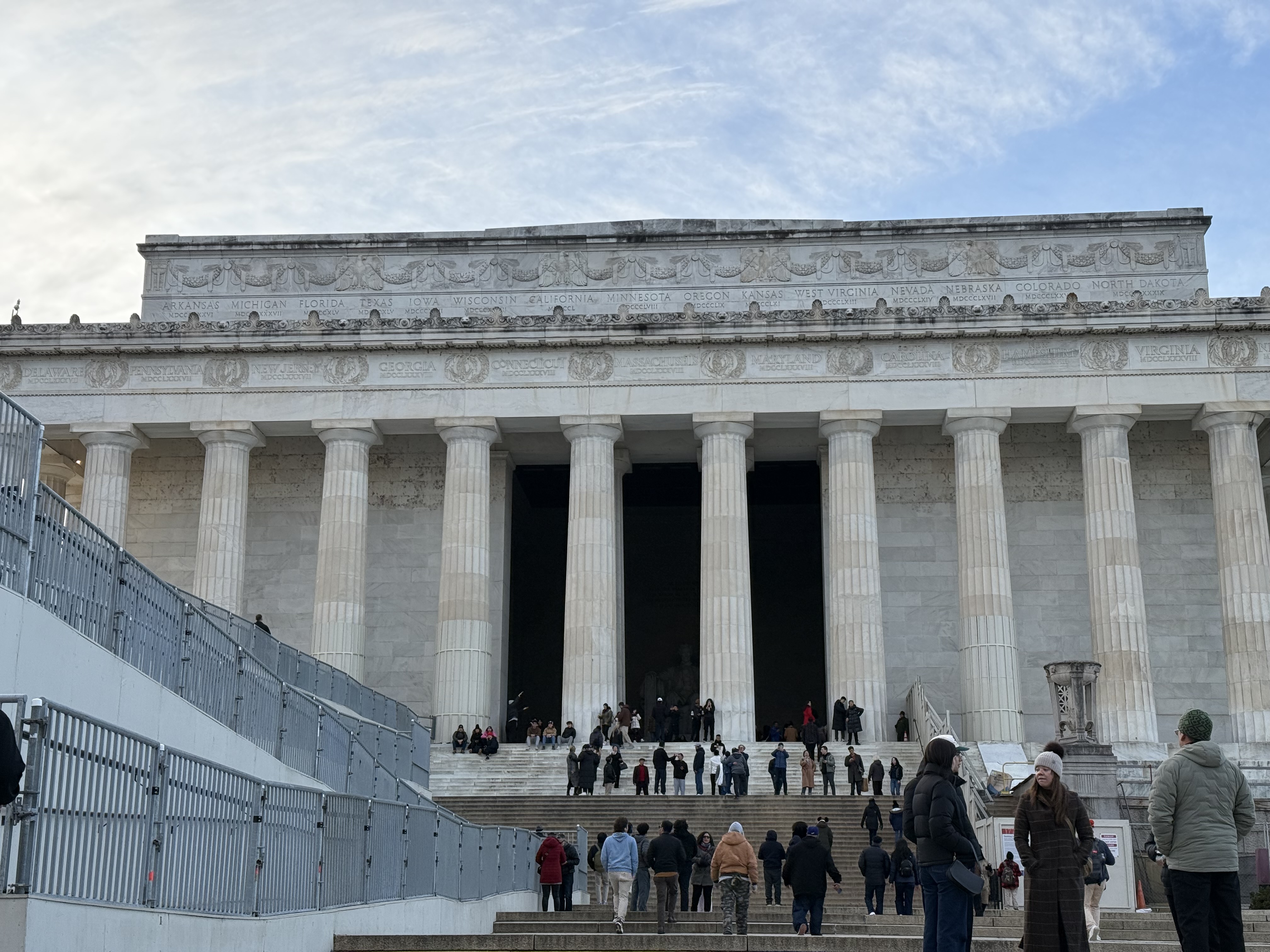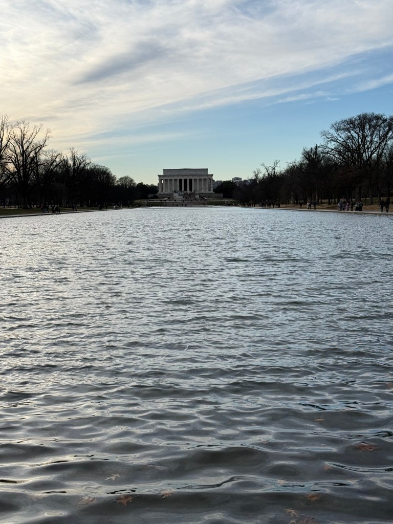 I also learned something new: despite often being photographed together, the Reflecting Pool actually belongs to the Lincoln Memorial, not the Washington Monument. We viewed the Lincoln Memorial from the bottom of the steps as daylight faded, but climbing those steps will definitely be on our list for next time.