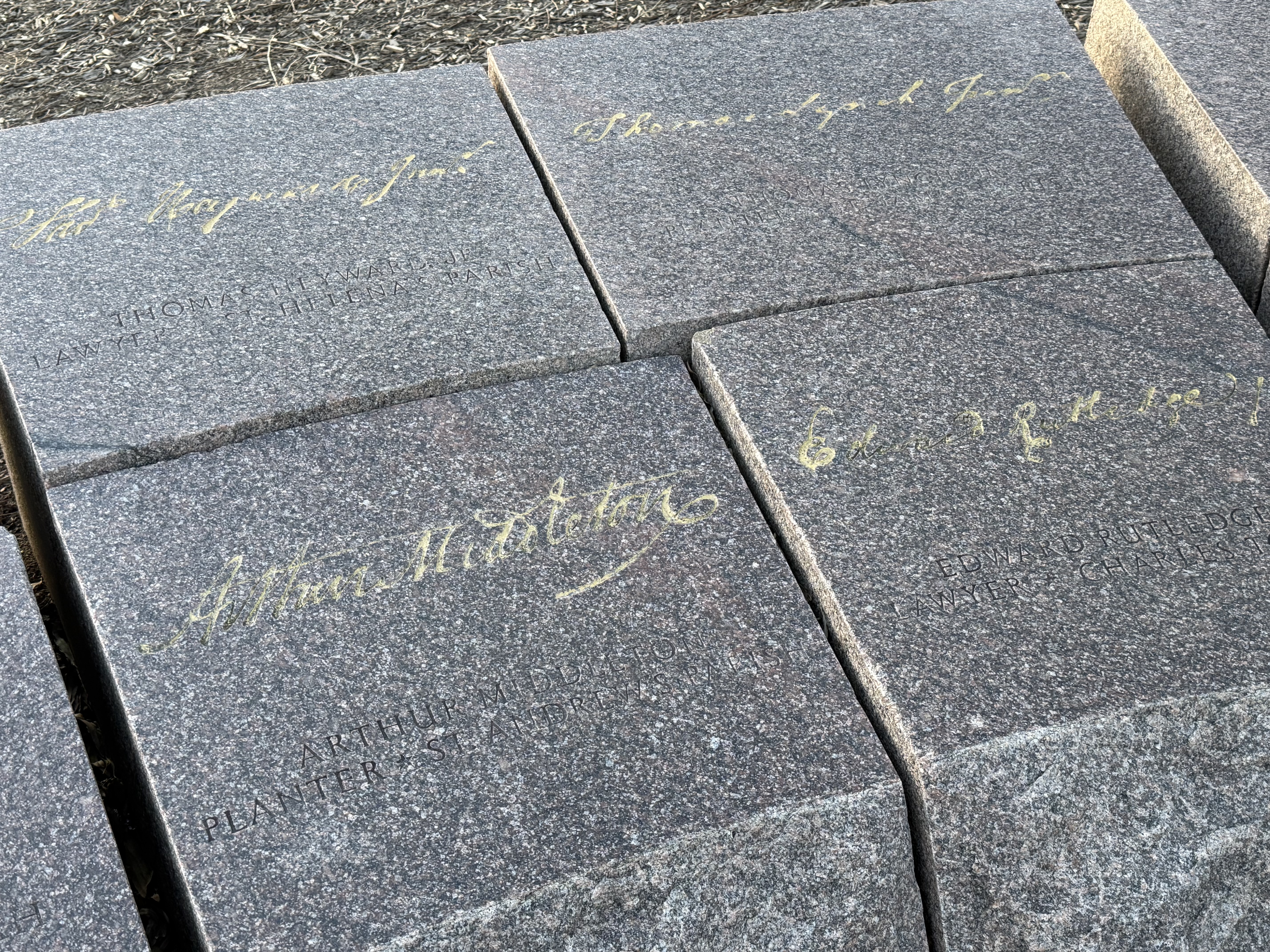 On our way out, we stopped at the 56 Signers of the Declaration of Independence Memorial, located on a small island in Constitution Gardens. It was fascinating to see the signatures etched in stone and to note where each signer was from—especially the few from South Carolina.