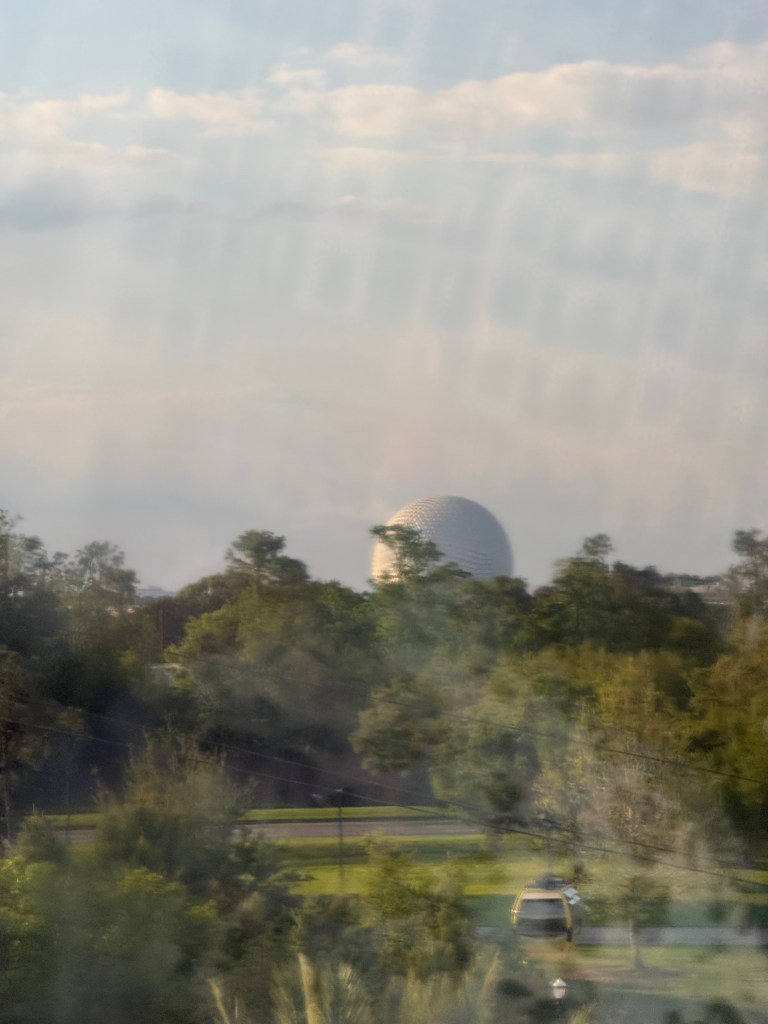 We rode the Skyliner all the way to EPCOT’s International Gateway—famous (or maybe infamous!) for its quick, slightly thrilling descent into the station.
